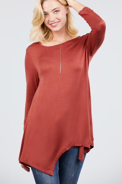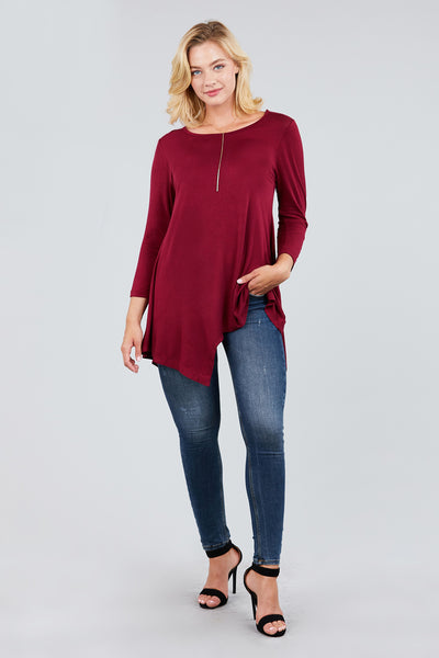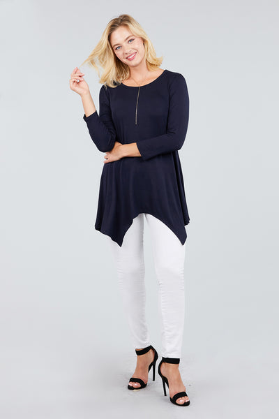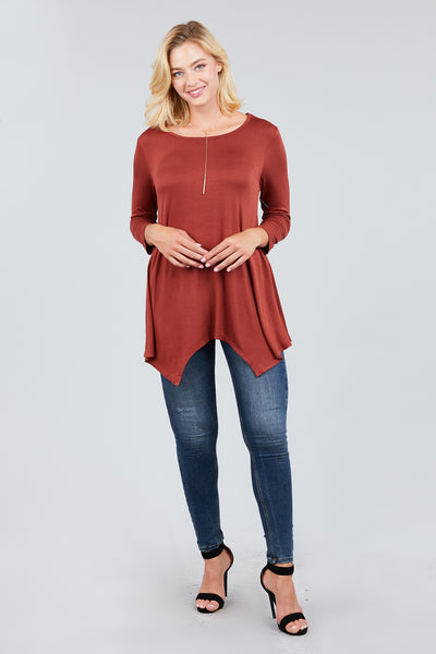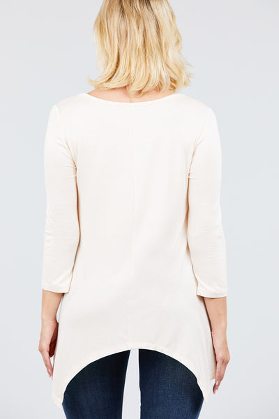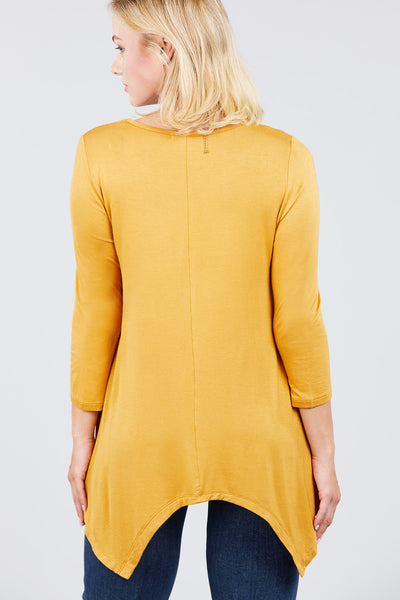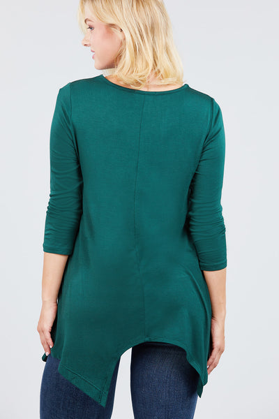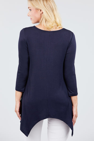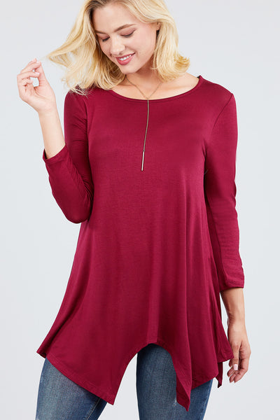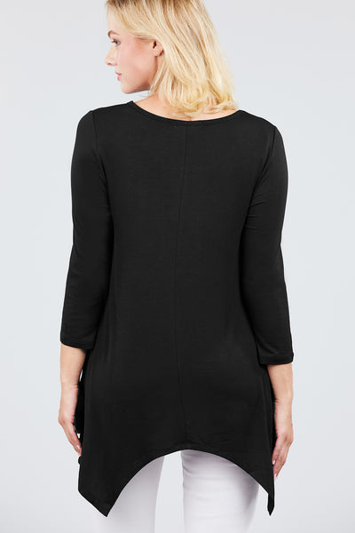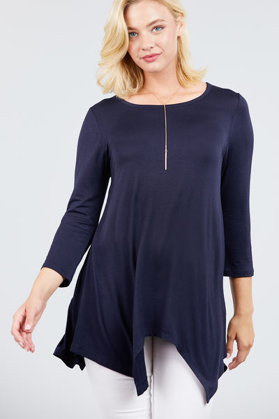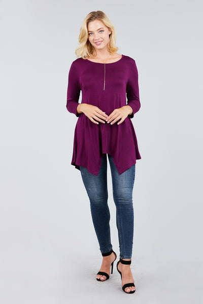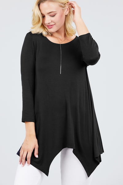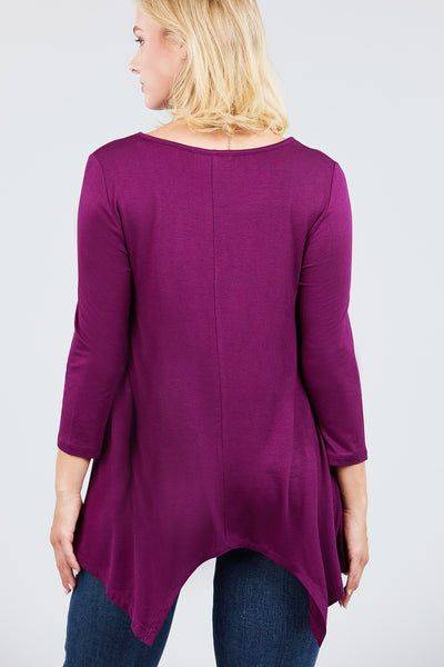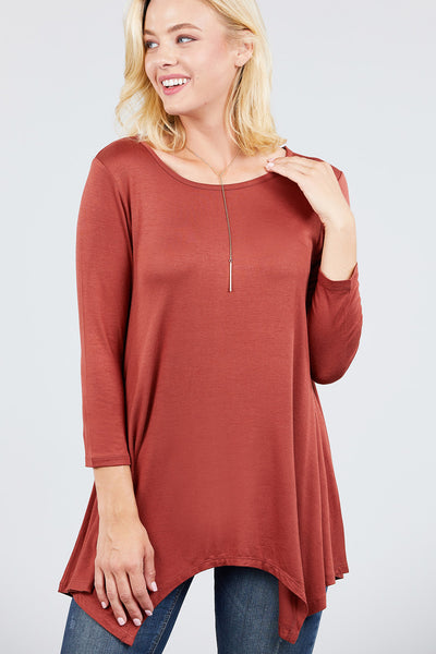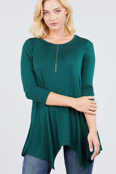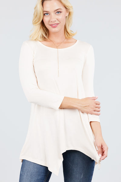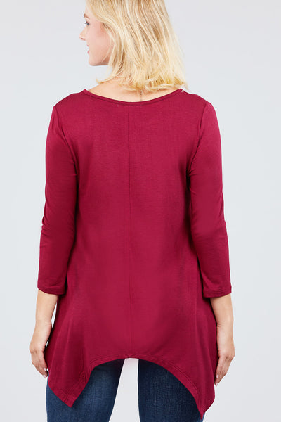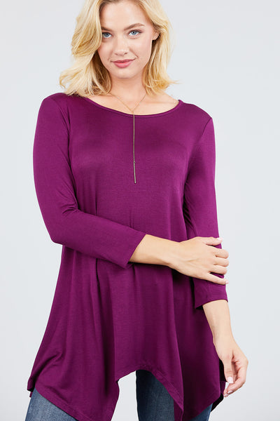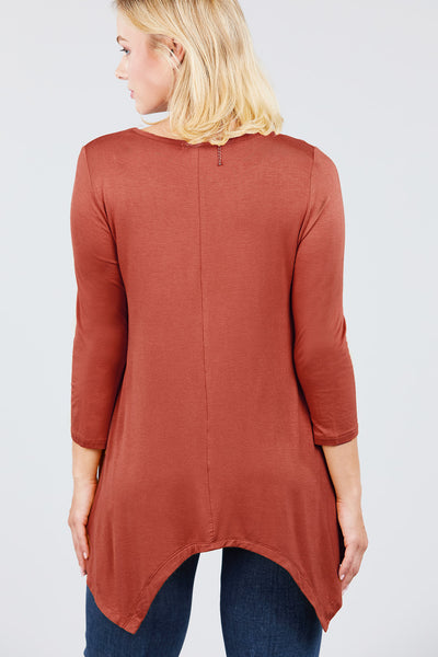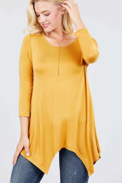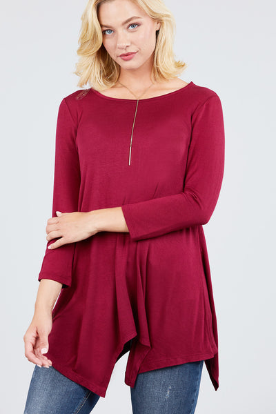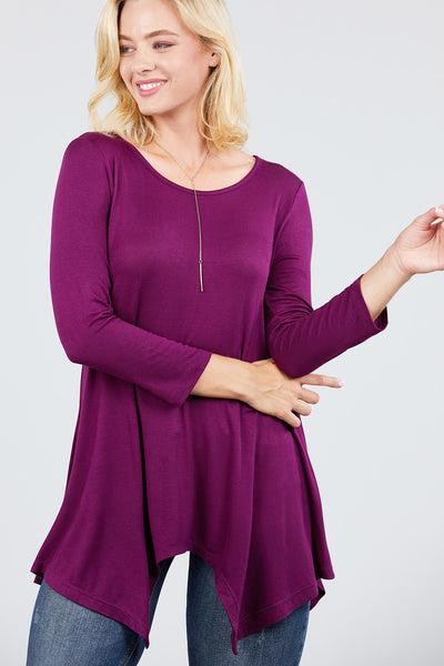 3/4 Sleeve Round Neck Rayon Spandex Flowy Top Loose Fit MT10973