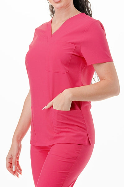 AJ1002 Medical Scrub Set 4 Way Stretch 6 Pockets V-Neck Top Joggers Pants Uniform Red