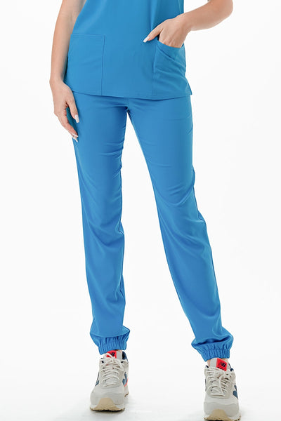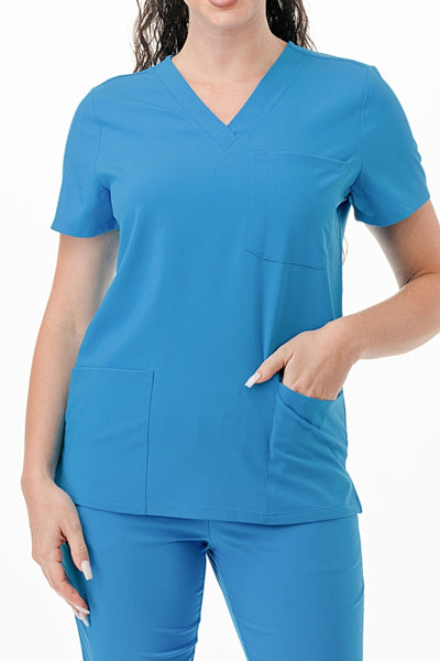 AJ1002 Medical Scrub Set 4 Way Stretch 6 Pockets V-Neck Top Joggers Pants Uniform Turquoise