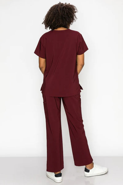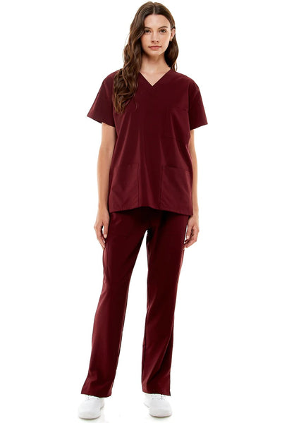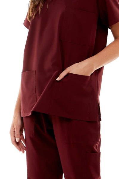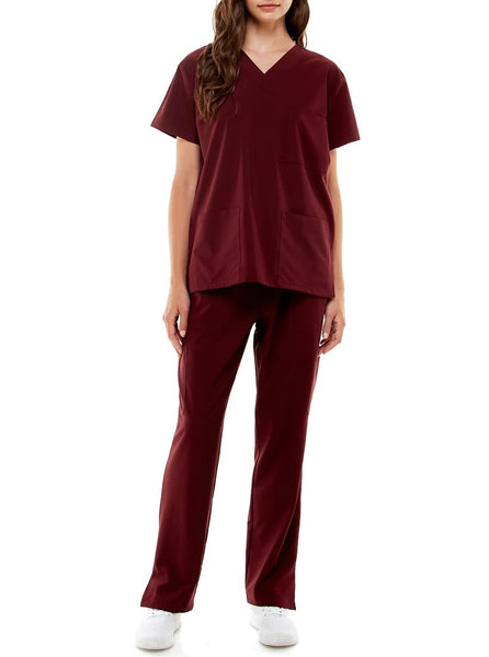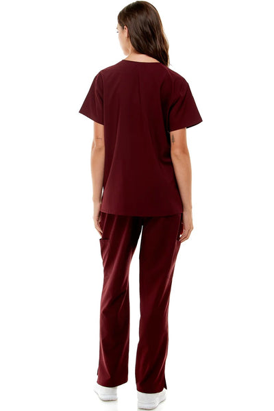 MCS0515 Scrub Sets Women and Man Medical Nursing Uniform 4-Way Stretch 8-Pocket Merlot