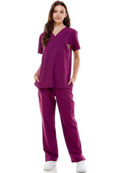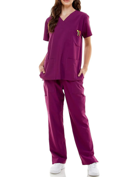 MCS0515 Scrub Sets Women and Man Medical Nursing Uniform 4-Way Stretch 8-Pocket Purple