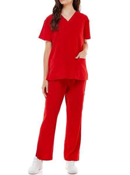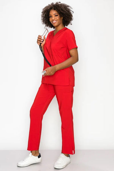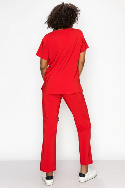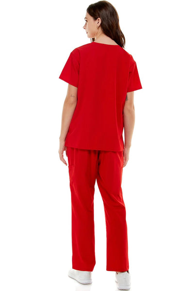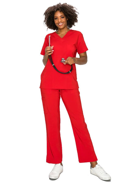 MCS0515 Scrub Sets Women and Man Medical Nursing Uniform 4-Way Stretch 8-Pocket Red