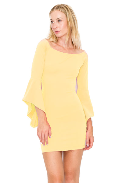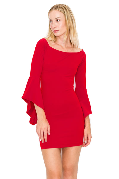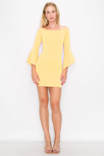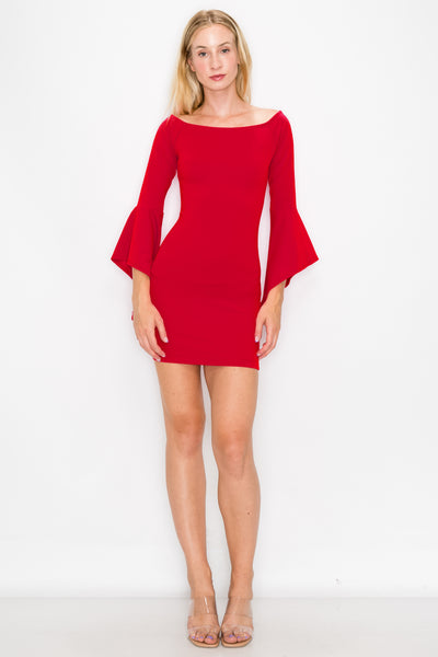 D3518 Bell Sleeve Off Shoulder Mini Dress Bodycon Zipper Back