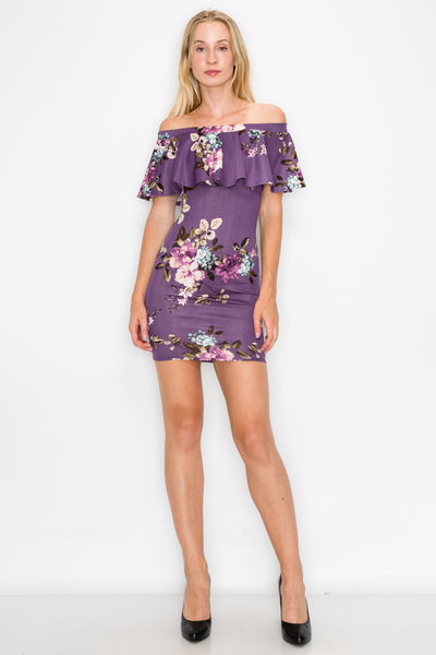 D3620 Floral Off Shoulder Mini Dress Bodycon