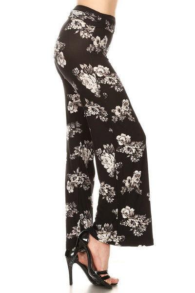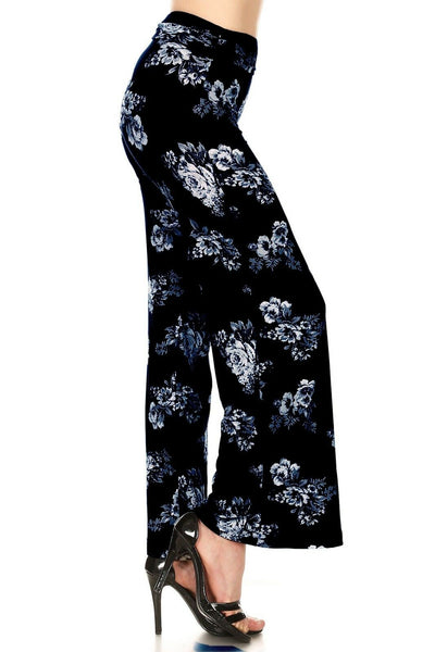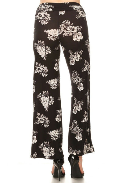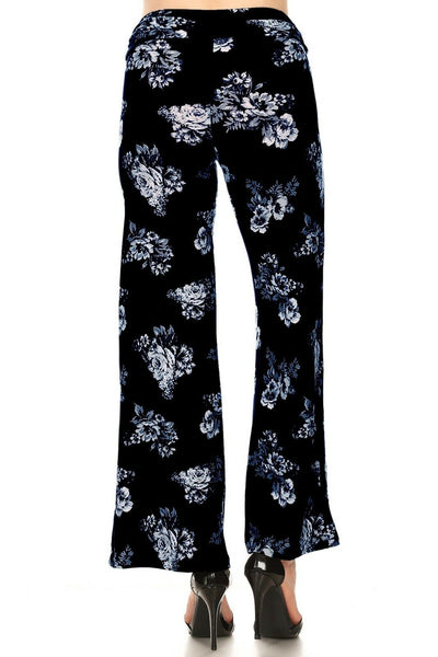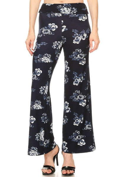 Floral Buttery Soft Foldover WIDE LEG PALAZZO Pants Black Navy