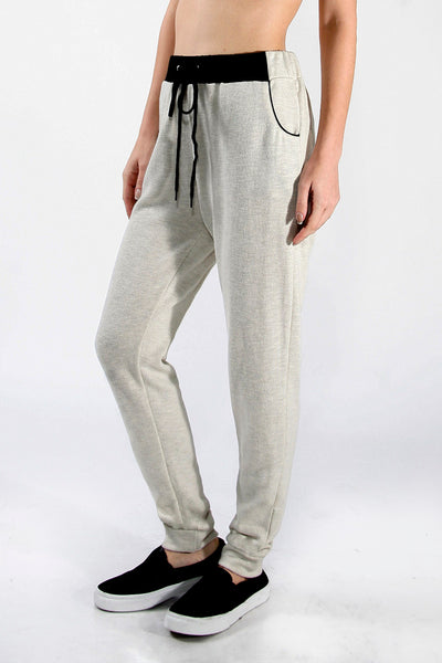 Marled Cotton Blend Drawstring Lounge Jogger Pants Activewear Oatmeal P1077